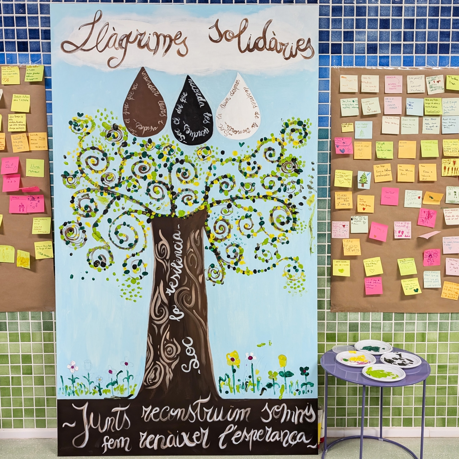 Cada lágrima es más que un simple adorno; es un símbolo tangible de empatía y un recordatorio de que juntos podemos superar cualquier adversidad. Las lágrimas con forma de gota simbolizan tanto el agua de la riada como las emociones que todos sentimos ante estos momentos tan difíciles. Pero también representan unión, ya que de cada gota surge una gran marea de apoyo y ayuda.